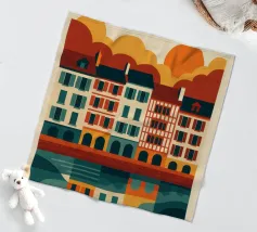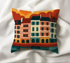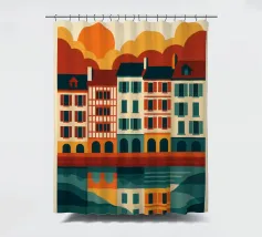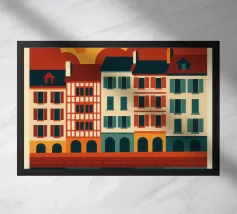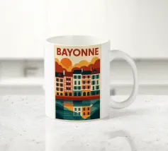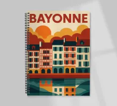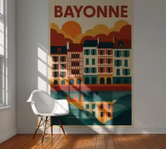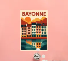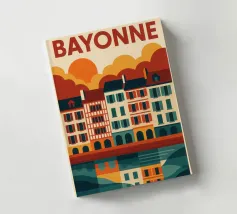 Questo poster celebra l'anima calda e colorata di Bayonne, con le sue case a graticcio, i riflessi nel fiume Nive e il cielo luminoso. Si percepisce il cuore pulsante dei Paesi Baschi, con le sue tradizioni vive e il suo modo di vivere gentile. Un invito grafico a passeggiare lungo le banchine, ad assaporare la luce della sera e a gustare la forte identità di una città a misura d'uomo.