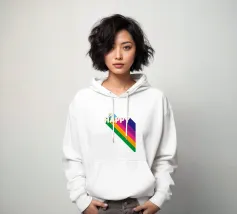 tipografia retrò, citazione positiva, design arcobaleno, decorazione colorata, scritte in grassetto, vibrazioni felici, arte edificante, stampa statement, design motivazionale