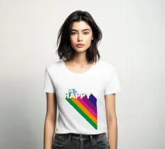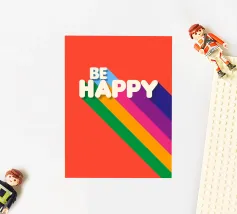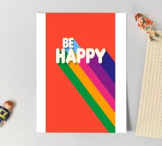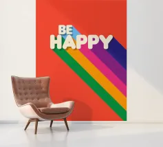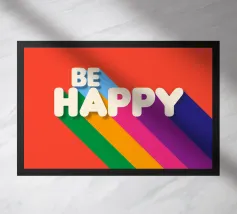 Ravvivate qualsiasi spazio con questo design tipografico audace e allegro! Caratterizzato dal messaggio edificante "Be Happy" in una giocosa scritta retrò, questo disegno è abbinato a un vibrante effetto ombra arcobaleno per un tocco divertente e nostalgico. Perfetto per aggiungere vibrazioni positive all'arredamento di casa, uffici e spazi creativi. Un grande regalo per chi ama i colori vivaci e l'energia felice. Creato da showmemars