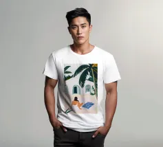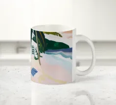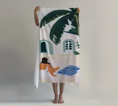 "Beachside Retreat" cattura un momento sereno e onirico di solitudine in riva all'oceano. Una figura solitaria siede pacificamente sulla sabbia, con lo sguardo rivolto alle dolci onde, circondata da palme lussureggianti e da una caratteristica casa sul mare. La morbida tavolozza pastello e le linee fluide evocano un senso di relax e di tranquilla riflessione. Quest'opera d'arte incarna la calma di una fuga tropicale, perfetta per chiunque voglia portare un tocco di tranquillità costiera nel proprio spazio. Progettato da BALIKA HOMES.