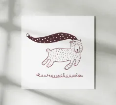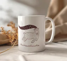 "Bearly Awake" è un'opera natalizia dipinta a mano che raffigura un orso che fluttua con uno stravagante cappello da Babbo Natale. Le tonalità calde e terrose e le pennellate visibili conferiscono un fascino accogliente e artigianale pieno di allegria natalizia.