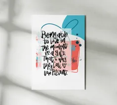"Essere in grado di vivere nel momento è un dono". Poster handlettering, poster di incoraggiamento, poster di yoga, poster di meditazione, poster di mindfulness, poster di contemplazione, poster regalo, poster di detti, poster di citazioni, illustrazione regalo, illustrazione regalo di Natale, poster di affermazione, poster di energia positiva, poster positivo, poster calligrafico, poster tipografico, poster lettering