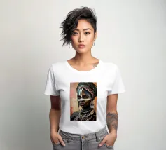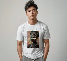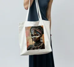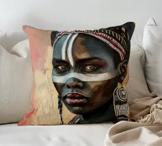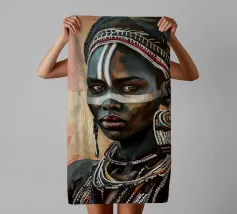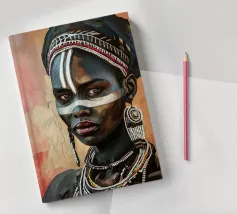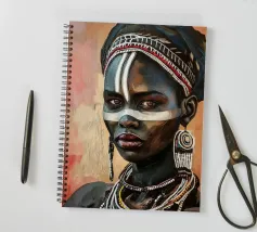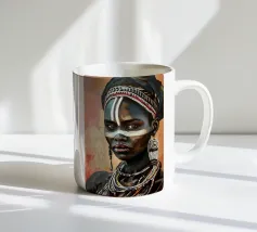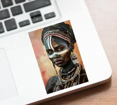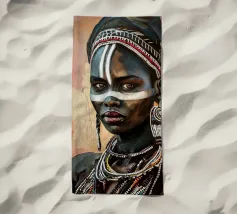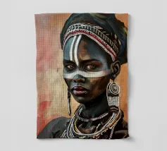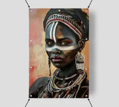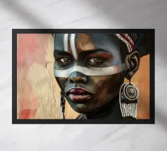 Questo vibrante ritratto di una giovane donna africana con una pittura tradizionale sul viso e gioielli colorati cattura la bellezza e la diversità dell'Africa.