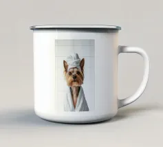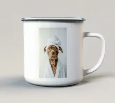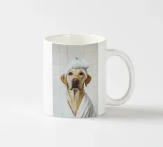 Un buffo golden retriever in accappatoio si gode il suo momento di benessere in bagno. Circondato da morbidi asciugamani e piastrelle, irradia relax e cura: la rappresentazione perfetta dell'amore e del relax dei cani!