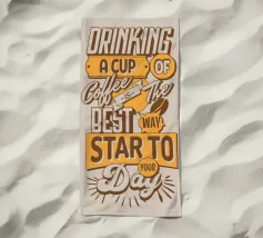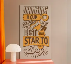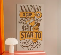 La frase "Bere una tazza di caffè è il modo migliore per iniziare la giornata" è scritta con un'elegante grafia marrone scuro su un armonioso sfondo color crema. Questo pezzo accattivante combina perfettamente armonia e raffinatezza, rendendolo un'aggiunta ideale alla caffetteria, alla cucina, all'ufficio o al soggiorno.