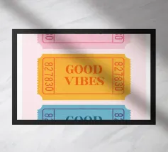 Portate l'energia positiva nel vostro spazio con il nostro poster "Good Vibes" Retro Tickets. Questa giocosa opera d'arte presenta tre biglietti della lotteria stilizzati in una vivace tavolozza di rosa, arancione e blu, ognuno dei quali proclama con forza "GOOD VIBES". I bordi rovinati e il design classico dei biglietti evocano un'estetica nostalgica e pop art, perfetta per aggiungere una dichiarazione allegra e di tendenza a qualsiasi interno moderno, spazio creativo o persino alla stanza di un adolescente. La nostra arte digitale è meticolosamente realizzata con una risoluzione di 7000x5000 pixel a 300 dpi, per garantire una nitidezza eccezionale e una finitura di alta qualità per i vostri biglietti premium.