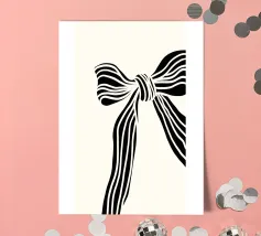 Chic e senza tempo, quest'opera d'arte presenta un elegante fiocco nero a righe su uno sfondo bianco. Il contrasto netto e le linee raffinate creano un look moderno ma di ispirazione rétro, ideale per un arredamento eclettico con un tocco art déco.