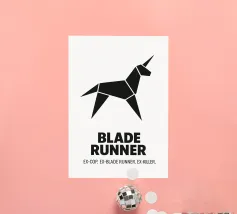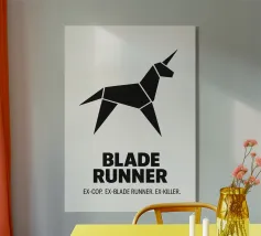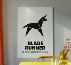 Stampa Blade Runner, Unicorno, Origami, Poster cinematografico alternativo, Bianco e nero, Minimalista, Film di fantascienza, Occhio umano, Regalo per appassionati di cinema