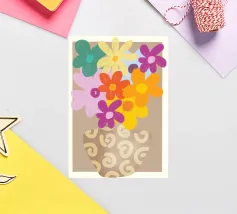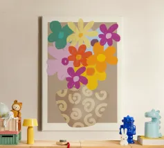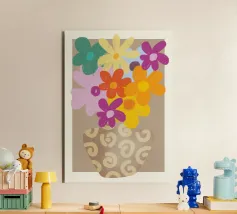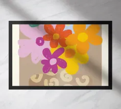 Bloom Architectura esplora l'intersezione tra natura e struttura. Petali stilizzati si incastrano con forme geometriche rigide - quadrati, archi e triangoli - come se i fiori si adattassero a una struttura architettonica. L'opera evoca la resilienza della bellezza organica in un mondo ordinato e lineare. I colori tenui - rosa antico, beige, verde oliva - conferiscono un calore discreto alla composizione. Un pezzo perfetto per introdurre un tocco di poesia strutturata in un interno contemporaneo.