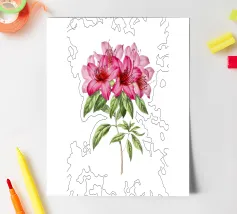 Disegno dettagliato di azalea rosa, disegnato con cura e chiarezza botanica