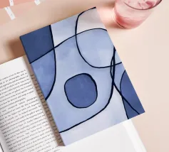 Arte astratta minimalista ma accattivante, forme e linee dipinte in un flusso estetico e in una tranquilla tavolozza di colori blu. La semplicità incontra l'eleganza in questa opera d'arte contemporanea. I suoi toni freschi creano uno sfondo sereno che si integra senza sforzo con qualsiasi stile. Caratterizzata da un assortimento di sottili forme tondeggianti e delicate linee di disegno, questa accattivante composizione mostra il flusso naturale e le variazioni di un'opera d'arte dipinta a mano.