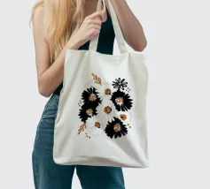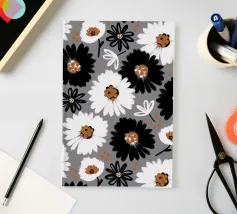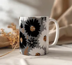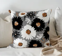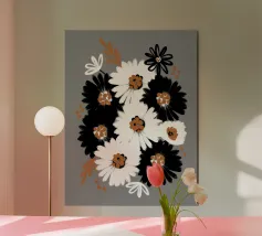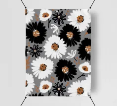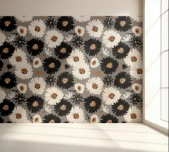 Questo motivo floreale in nero, bianco e caramello incanta con la sua composizione cromatica armoniosa e conferisce un'eleganza elegante con un tocco di poesia naturale a qualsiasi ambiente.