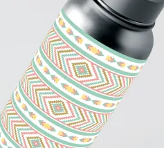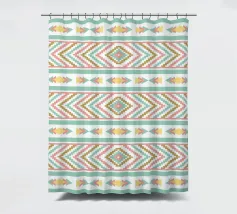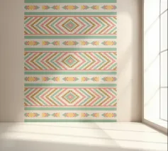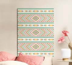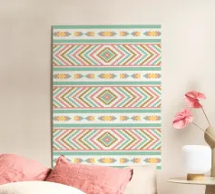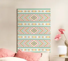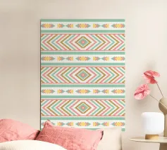 Arte geometrica astratta turchese e corallo - Elegante atmosfera boho con moderni colori pastello. I toni tenui del turchese e del corallo incontrano un moderno motivo tribale boho: questo disegno astratto e geometrico combina un leggero spirito hippie con un armonioso look pastello.