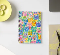 Schizzi di gatti stravaganti con linee spesse, blocchi di colore vivaci ed espressioni simpatiche. Questo disegno di gatto è caratterizzato da un'espressione cruda e da una sfida giocosa, che unisce la spontaneità della street-art a un senso di chiarezza grafica.