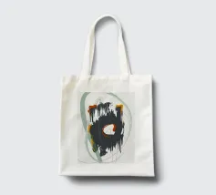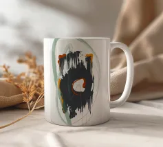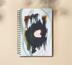 Pennellate audaci e ampie in toni scuri e tenui sono accentuate da linee fluide verdi e arancioni. Un vuoto centrale è circondato da colori stratificati, creando un senso dinamico di movimento.