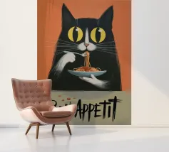 Questo gatto affamato porta l'umorismo sulla vostra parete: buon appetito per tutti gli amanti della pasta e dei gatti!