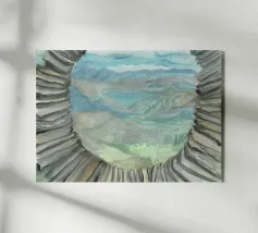 Un suggestivo paesaggio acquerellato della scena Banksy di Borrowdale Lake District, che conferisce una serena bellezza naturale a questo acquerello tenue.
