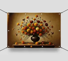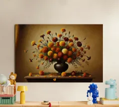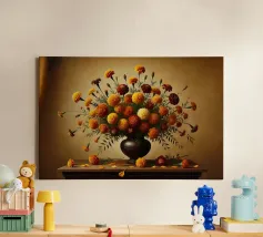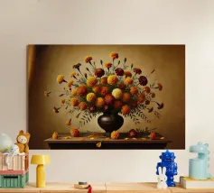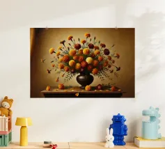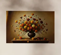 Raffinata stampa d'arte di ispirazione vittoriana che raffigura un lussureggiante bouquet di fiori disposti in un vaso ornato, dipinto in stile classico ad olio con ricchi dettagli ed eleganza senza tempo - perfetto per aggiungere fascino vintage e raffinatezza a qualsiasi interno.