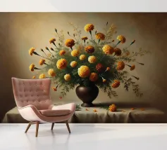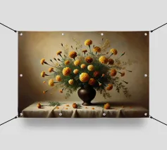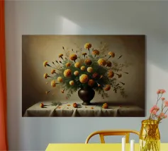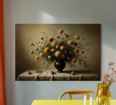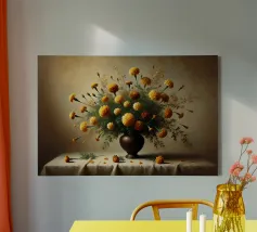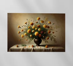 Raffinata stampa d'arte di ispirazione vittoriana che raffigura un lussureggiante bouquet di fiori disposti in un vaso ornato, dipinto in stile classico ad olio con ricchi dettagli ed eleganza senza tempo - perfetto per aggiungere fascino vintage e raffinatezza a qualsiasi interno.