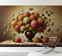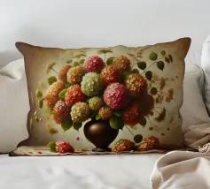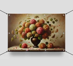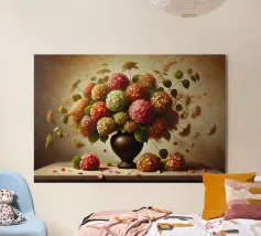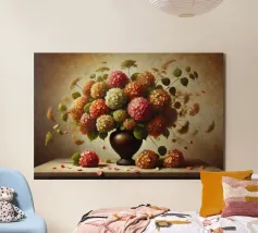 Raffinata stampa d'arte di ispirazione vittoriana che raffigura un lussureggiante bouquet di fiori disposti in un vaso ornato, dipinto in stile classico ad olio con ricchi dettagli ed eleganza senza tempo - perfetto per aggiungere fascino vintage e raffinatezza a qualsiasi interno.