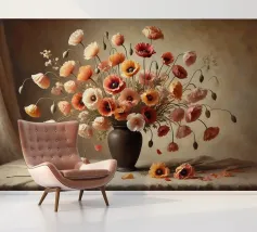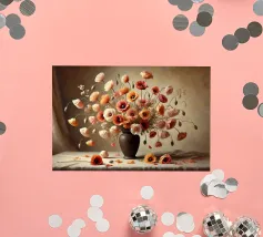 Raffinata stampa d'arte di ispirazione vittoriana che raffigura un lussureggiante bouquet di fiori disposti in un vaso ornato, dipinto in stile classico ad olio con ricchi dettagli ed eleganza senza tempo - perfetto per aggiungere fascino vintage e raffinatezza a qualsiasi interno.