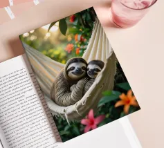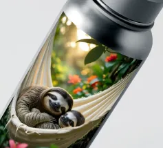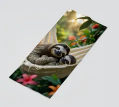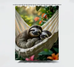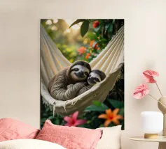 Una mamma bradipo culla dolcemente il suo piccolo su un'amaca tra le foglie. La loro pelliccia cattura il sole, la loro postura dice tutto: niente fretta, solo amore ♥. Questa scena da sogno è perfetta per una stanza da sogno o come tocco di dolcezza nella camera di un adolescente.