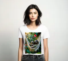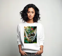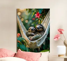 Una mamma bradipo culla dolcemente il suo piccolo su un'amaca tra le foglie. La loro pelliccia cattura il sole, la loro postura dice tutto: niente fretta, solo amore ♥. Questa scena da sogno è perfetta per una stanza da sogno o come tocco di dolcezza nella camera di un adolescente.