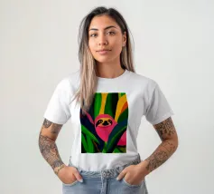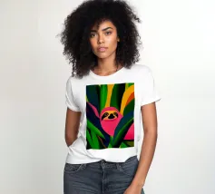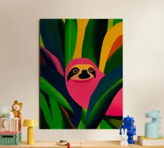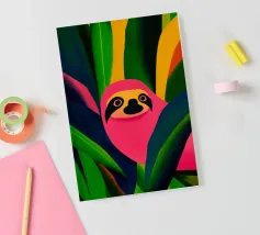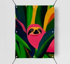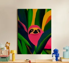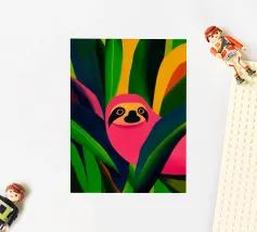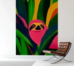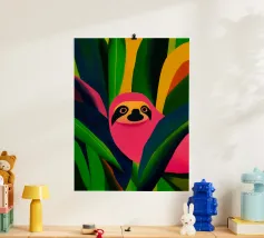 Questo incantevole ritratto di bradipo combina la gioia di vivere tropicale con la precisione geometrica nello stile dell'illustrazione moderna. La silhouette rosa acceso contrasta brillantemente con la giungla verde di foglie: un capolavoro di grafica animale minimalista. Ispirato al design scandinavo e all'arte digitale contemporanea, il motivo irradia pura serenità. Perfetto per tutti coloro che amano le vibrazioni rilassate della giungla e i colori allegri, e per i quali la pigrizia non è un concetto sconosciuto.