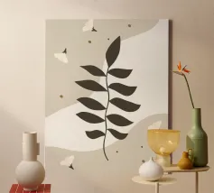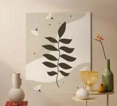 Una delicata danza della natura: quest'opera d'arte minimalista presenta un grazioso ramo frondoso circondato da morbidi elementi floreali, in una fluida tonalità neutra. Perfetto per gli amanti dell'arredamento botanico moderno, questo pezzo porta calma, equilibrio e fascino naturale a qualsiasi spazio.