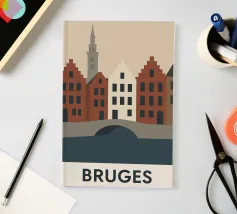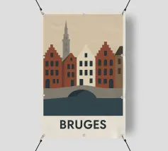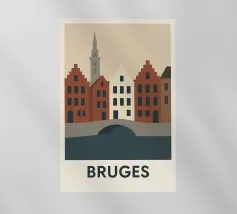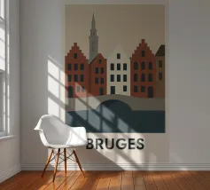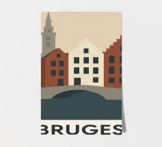 Case a graticcio, ponti in pietra e campanili medievali si fondono in una composizione calda e ordinata. Questo poster cattura l'essenza poetica di Bruges, città d'arte e di silenzio, perfetta per gli amanti dell'estetica fiamminga e del fascino senza tempo.