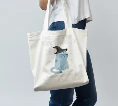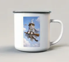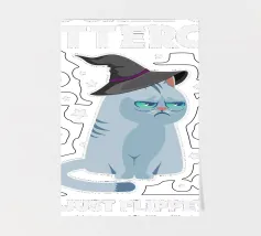 Un gatto brontolone con un cappello da strega è circondato da stelle. Il testo recita: "Allacciati le cinture, hai appena acceso il mio interruttore da strega".
