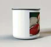 Babbo Natale si sta prendendo una meritata pausa dopo una lunga notte: è sdraiato felicemente a letto, rilassandosi e leggendo il giornale con il titolo "Buon Natale". L'illuminazione calda, il suo sorriso allegro e l'ambiente accogliente irradiano pura contentezza e gioia festiva: un motivo natalizio spiritoso e commovente.