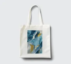 I tratti energici esplodono in bianco e cobalto come ali che catturano l'aria dorata.