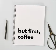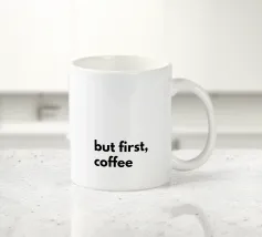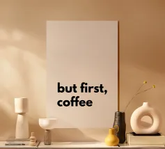Un poster minimalista con un messaggio chiaro per tutti gli amanti del caffè: "ma prima il caffè", perché nulla va bene prima della prima tazza.