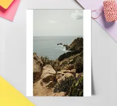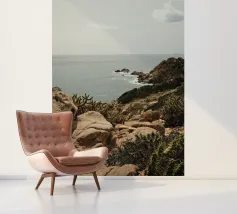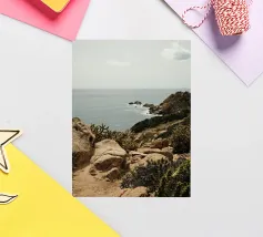 Aggiungete un tocco di selvaggio west al vostro spazio con questa splendida foto di una collina rocciosa ornata da cactus verdi e rigogliosi. La vivacità del verde contro il terreno accidentato conferisce un'atmosfera unica e rinfrescante a qualsiasi ambiente. Perfetto per gli amanti della natura e per chi desidera aggiungere un po' di fascino del deserto all'arredamento della propria casa.