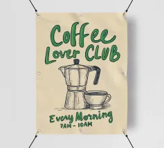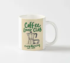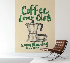 Nel "Coffee Lover Club" celebriamo l'amore per il caffè dalle 7 alle 10. Con un design minimalista verde e beige e un'affascinante scenetta della tazzina da caffè e della moka retrò, ogni sorso è un piacere!