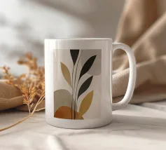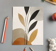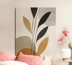 Una calma composizione botanica nei caldi toni della terra, forme moderne e minimali, morbidi colori neutri, forme organiche e uno stile d'interni contemporaneo.