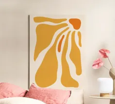 Quest'opera d'arte astratta combina forme organiche e fluide nei toni caldi del giallo e dell'arancione su uno sfondo neutro. Le linee morbide e l'armoniosa composizione dei colori emanano energia e allo stesso tempo un'eleganza rilassante. Perfetto per murales, cuscini, tazze o cover per cellulari, questo disegno dona calore e stile agli ambienti moderni. Un regalo ideale per gli amanti dell'arte e per chiunque apprezzi le decorazioni senza tempo.