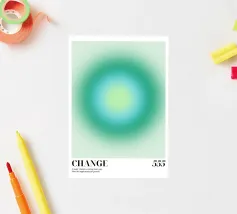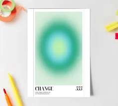 Abbracciate la trasformazione con la stampa d'arte a gradiente "Change 555". Questo pezzo rilassante presenta un centro luminoso verde chiaro che si irradia in tonalità rilassanti di verde acqua e verde più profondo, simboleggiando la crescita e i nuovi inizi. Al di sotto del sereno gradiente, il messaggio di forza "Un grande cambiamento è in arrivo per te. Guarda questa opportunità di crescita" incoraggia una visione positiva. Come poster digitale di alta qualità, offre un'impressionante risoluzione di 7000x5000 pixel a 300 dpi, assicurando una chiarezza eccezionale e transizioni di colore fluide per una visualizzazione davvero stimolante.