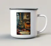 Questa suggestiva immagine mostra un salotto decorato in modo accogliente nel periodo natalizio. Un albero di Natale magnificamente decorato brilla in un tripudio di luci accanto a un caldo fuoco aperto. Numerosi regali colorati si trovano sotto l'albero e diffondono un'atmosfera di festa. Le decorazioni natalizie con ghirlande e candele conferiscono alla scena un'atmosfera accogliente e festosa. Ideale per biglietti d'auguri, poster, calendari o come decorazione natalizia d'atmosfera.