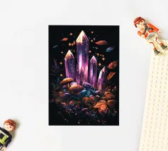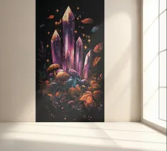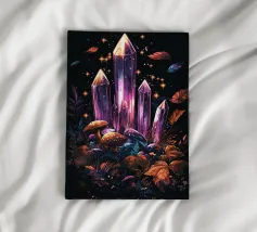 Un'affascinante composizione di cristalli scintillanti, funghi luminosi e fogliame autunnale si erge dal suolo della foresta contro un cielo notturno stellato. L'opera d'arte irradia magia ed energia cosmica: un'armoniosa interazione tra natura e fantasia. I cristalli scintillanti attirano lo sguardo ed evocano associazioni con il misticismo, la spiritualità e i poteri nascosti. Perfetta per gli appassionati di esoterismo, per gli amanti dei cristalli o come elemento d'atmosfera in spazi meditativi o creativi.