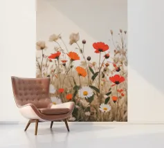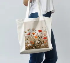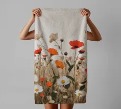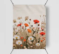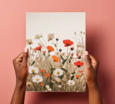 Fotografia di un campo di fiori: Una fotografia mozzafiato di un prato vibrante in piena fioritura, che mostra un mare di fiori colorati che si estende fino all'orizzonte. Questa immagine porta la bellezza della natura in casa, irradiando serenità e gioia.