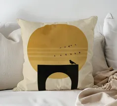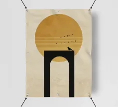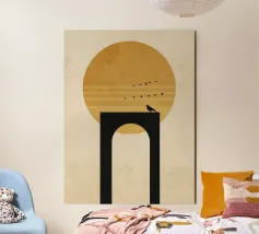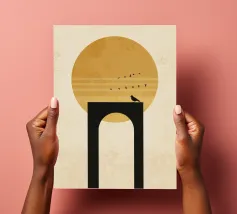 Entrate in un mondo di contrasti sorprendenti e di tranquilla contemplazione con "Archway Sunset with Lone Bird", un'accattivante stampa digitale minimalista. Questo pezzo sofisticato presenta una grande sfera giallo-dorata, che ricorda un sole o una luna potenti e che fa da sfondo caldo a un cielo beige chiaro dalla texture sottile. Perfetto per case contemporanee, interni moderni di metà secolo o per qualsiasi spazio che cerchi una dichiarazione calma, sofisticata e artisticamente ricca. Elevate il vostro arredamento con questa miscela unica di semplicità grafica e profonda narrazione visiva.
