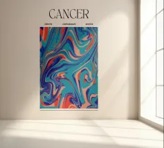 Un design rilassante a tema Cancro che cattura l'essenza di questo segno zodiacale sensibile, empatico e intuitivo attraverso motivi organici e fluidi. Con una tavolozza di colori oceanici e rilassanti, quest'opera d'arte evoca lo spirito nutritivo, la profondità emotiva e la natura protettiva del Cancro. Ideale per chi apprezza la connessione, l'intuizione e l'energia domestica. Perfetto per gli appassionati di astrologia, per gli amanti dell'oroscopo e per chi è attratto da un'arte morbida e armoniosa. Una splendida aggiunta a decorazioni murali, poster, abbigliamento e altro ancora!