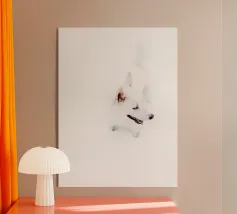 Questo disegno minimalista mostra un cane bianco in piedi in un paesaggio invernale candido. La palette di colori ridotta e la composizione chiara creano un'estetica moderna e rilassante, perfetta per gli amanti degli animali e per gli appassionati di arte elegante. Che si tratti di un murale, di una tazza, di una cover per cellulare o di un cuscino, questo motivo porta la tranquilla bellezza dell'inverno e l'eleganza dei motivi animali in ogni casa.