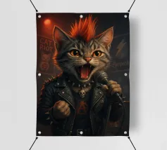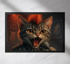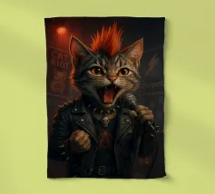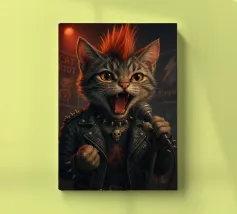 Il soriano dal pelo appuntito intona un inno punk al microfono: l'arte ribelle ideale per i fan del rock, i vocalist e gli amanti dei gatti che desiderano un atteggiamento feroce e vibrazioni anarchiche.