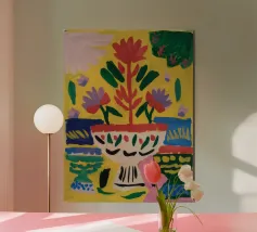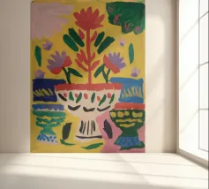 Una rappresentazione astratta, caotica e gioiosa di un giardino o di un mazzo di fiori. Le pennellate espressive, i colori vivaci e le forme dinamiche creano un'opera piena di vita e di energia creativa.