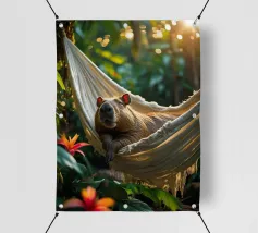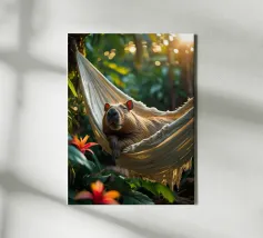 Con le zampe oltre il bordo e lo sguardo calmo verso la luce del mattino, questo capibara è appeso come un vero maestro zen alla sua amaca. Una stampa ideale per la vostra stanza del freddo o come poster per il giardino, per rimanere in modalità estiva per un po' - in stile capibara.