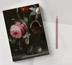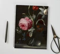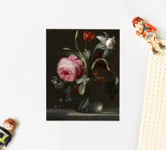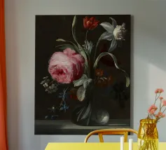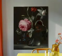 Fiori in vaso di Simon Verelst (1669 circa) mostra una natura morta floreale finemente disposta con dettagli brillanti. Rose, tulipani e altri fiori si dispiegano in un semplice vaso di vetro, magistralmente illuminato nello stile barocco olandese. Quest'opera testimonia la virtuosa tecnica pittorica di Verelst e rappresenta un punto di forza della pittura floreale classica. In mostra al Cleveland Museum of Art.