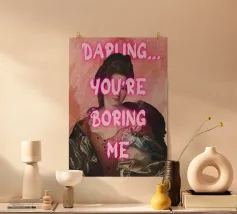 Introducete un po' di allegria nel vostro spazio con "Darling, You're Boring Me", una vibrante stampa pop art che giustappone sapientemente una ritrattistica classica a una dichiarazione contemporanea e umoristica. Questo pezzo accattivante presenta una figura storica regale, la cui espressione accenna sottilmente al disinteresse, sovrapposta al testo rosa acceso "DARLING... MI STAI ANNOIANDO". È una dichiarazione spiritosa ed elegante, perfetta per aggiungere personalità e un tocco di fascino ribelle a qualsiasi interno moderno. Stampato a un'eccezionale risoluzione di 7000x5000 pixel e 300 dpi, per garantire ogni dettaglio e la luminosità della scritta "DARING".